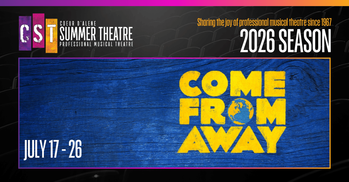 Coeur d’Alene Summer Theatre is proud to present as part of our 2026 summer lineup. This Tony award-winning musical, written by Irene Sankoff and David Hein, premiered on Broadway in 2017 and quickly became a global phenomenon. Come From Away earned 7 Tony Award nominations, winning for Best Direction of a Musical, and has touched audiences around the world with its remarkable true story of compassion and community.
