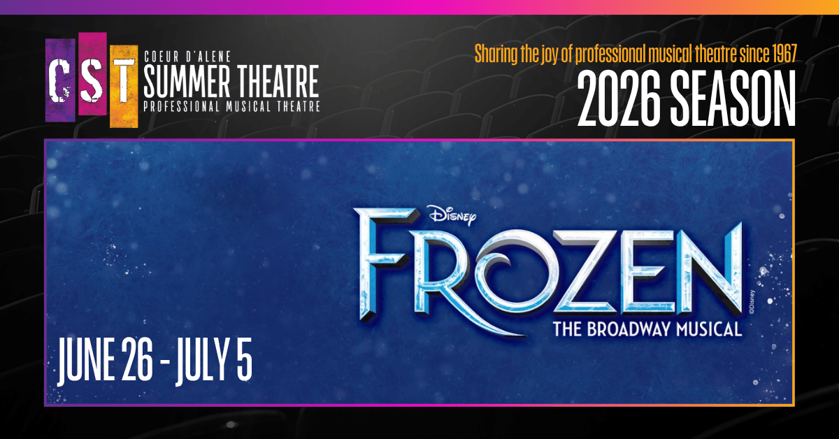 Coeur d’Alene Summer Theatre is thrilled to present Disney's Frozen the Musical as part of our 2026 summer season. Based on Disney’s Oscar®-winning animated film, this spectacular Broadway adaptation brings to life the magic, adventure, and unforgettable music that have captured hearts around the world. Featuring songs by Kristen Anderson-Lopez and Robert Lopez, including “Let It Go,” “Do You Want to Build a Snowman?” and “For the First Time in Forever”, Frozen the Musical dazzles audiences with breathtaking visuals, soaring vocals, and heartfelt storytelling.