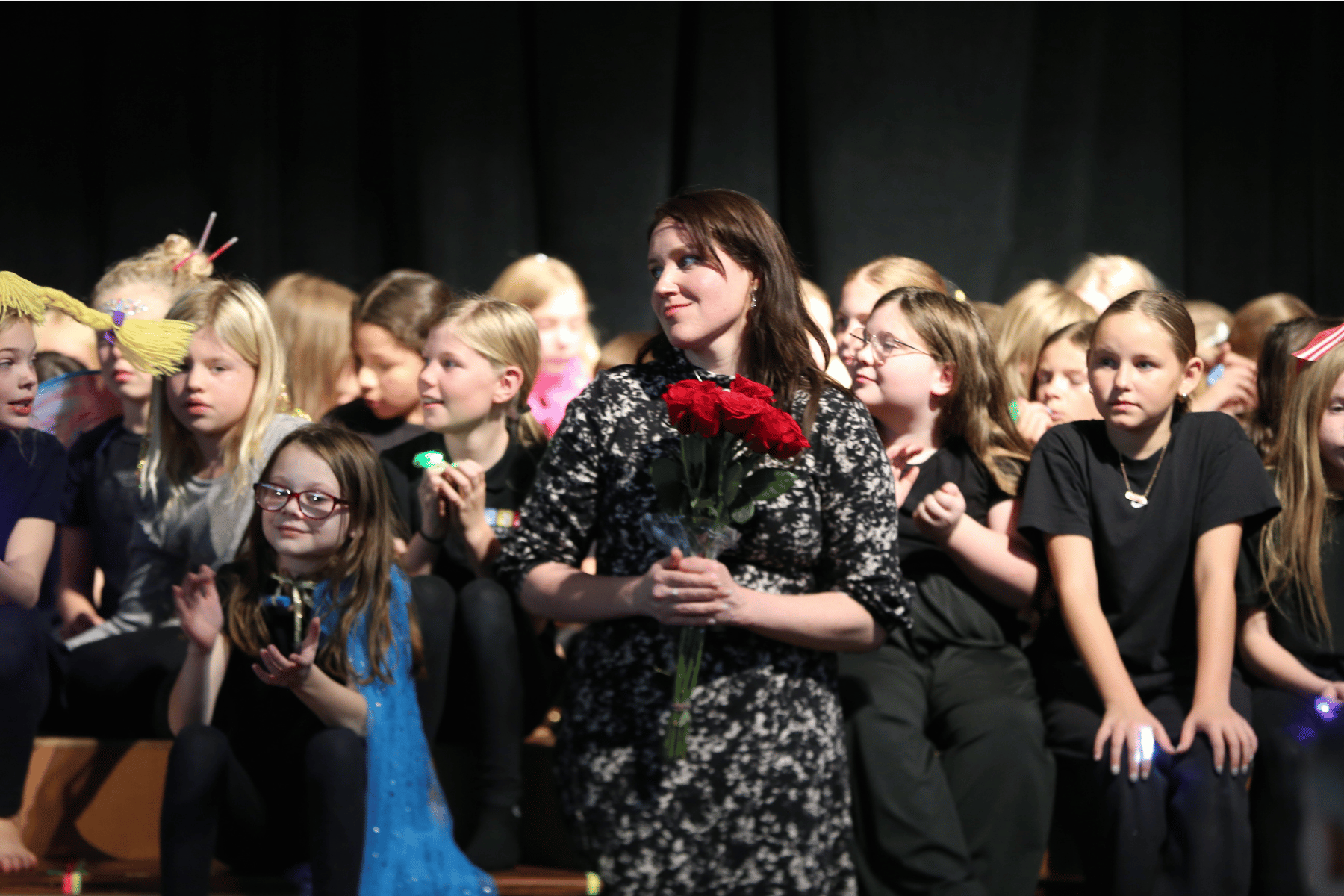 The hallway entrance to the gym was lined with a long, knitted streamer created by the students. Each section reflected an individual’s unique expression, joined together to form a stunning masterpiece that stretched more than 40 feet. It beautifully showcased both the creativity of each student and the unity of the group as they worked together to create something truly special. It was no surprise that we saw exactly this type of community during the all-school performance we had the privilege of seeing.