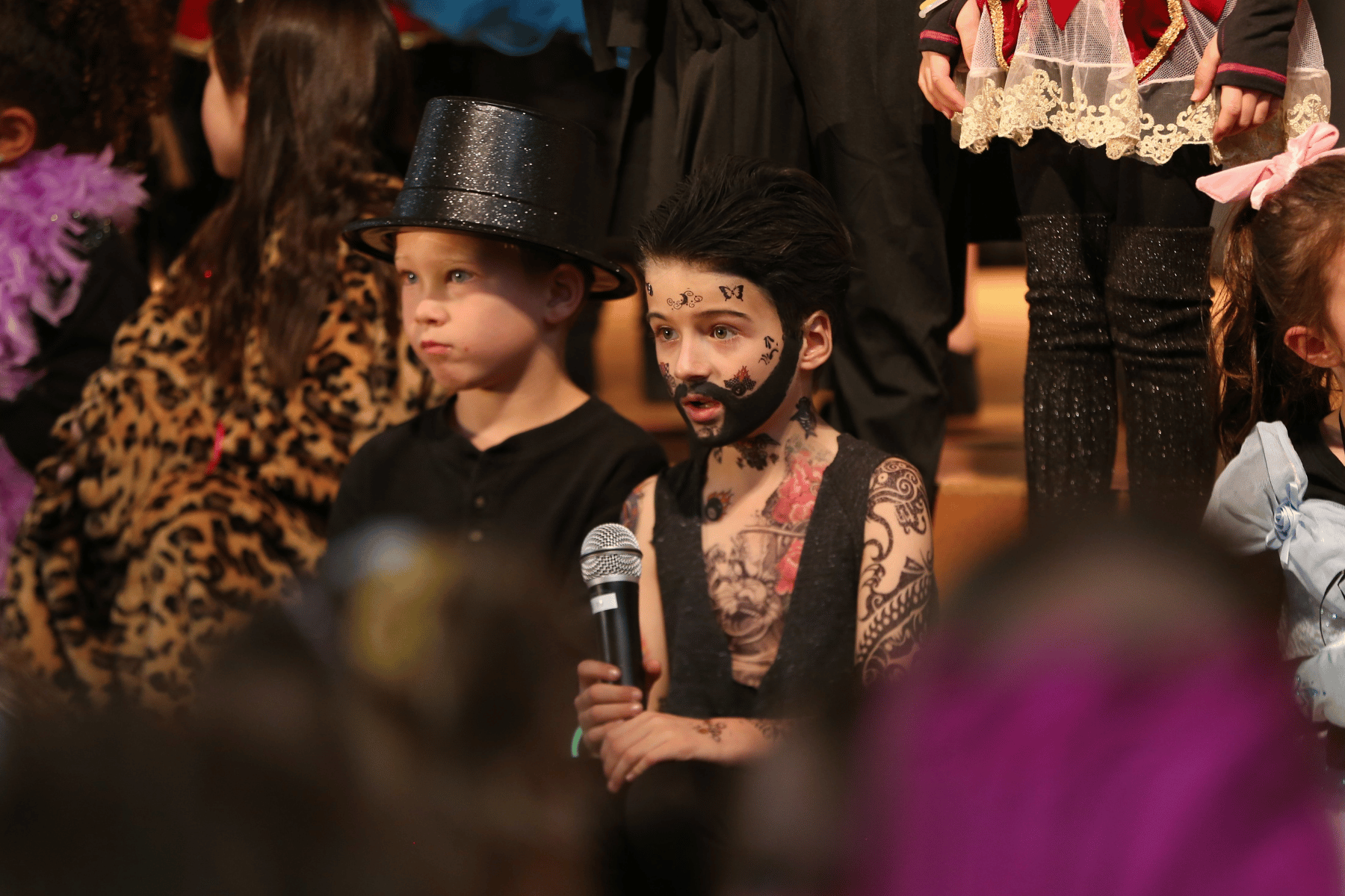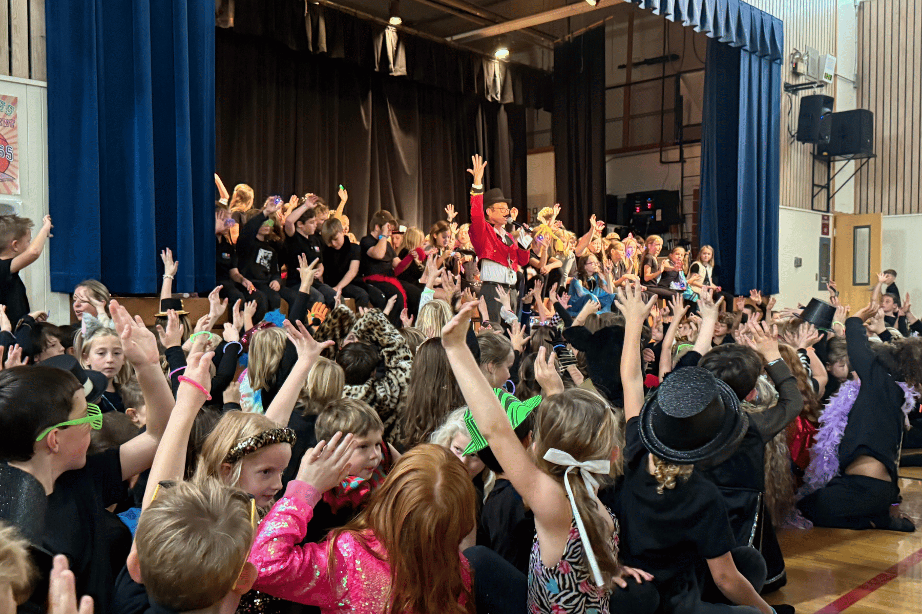The residency wrapped up with a 10-minute Musical Theatre Revue with music from The Greatest Showman, where every student gets their moment to shine. This showcase was nothing short of spectacular. The sheer organization that took place in order to pull it off! Every single grade had their spotlight as they transitioned in the gym around the perimeter, up on the stage and in the bleachers. The teachers were involved, too, helping to usher in the parents and audience members and directing their classes during the performance to hit their marks. This was a TEAM effort!