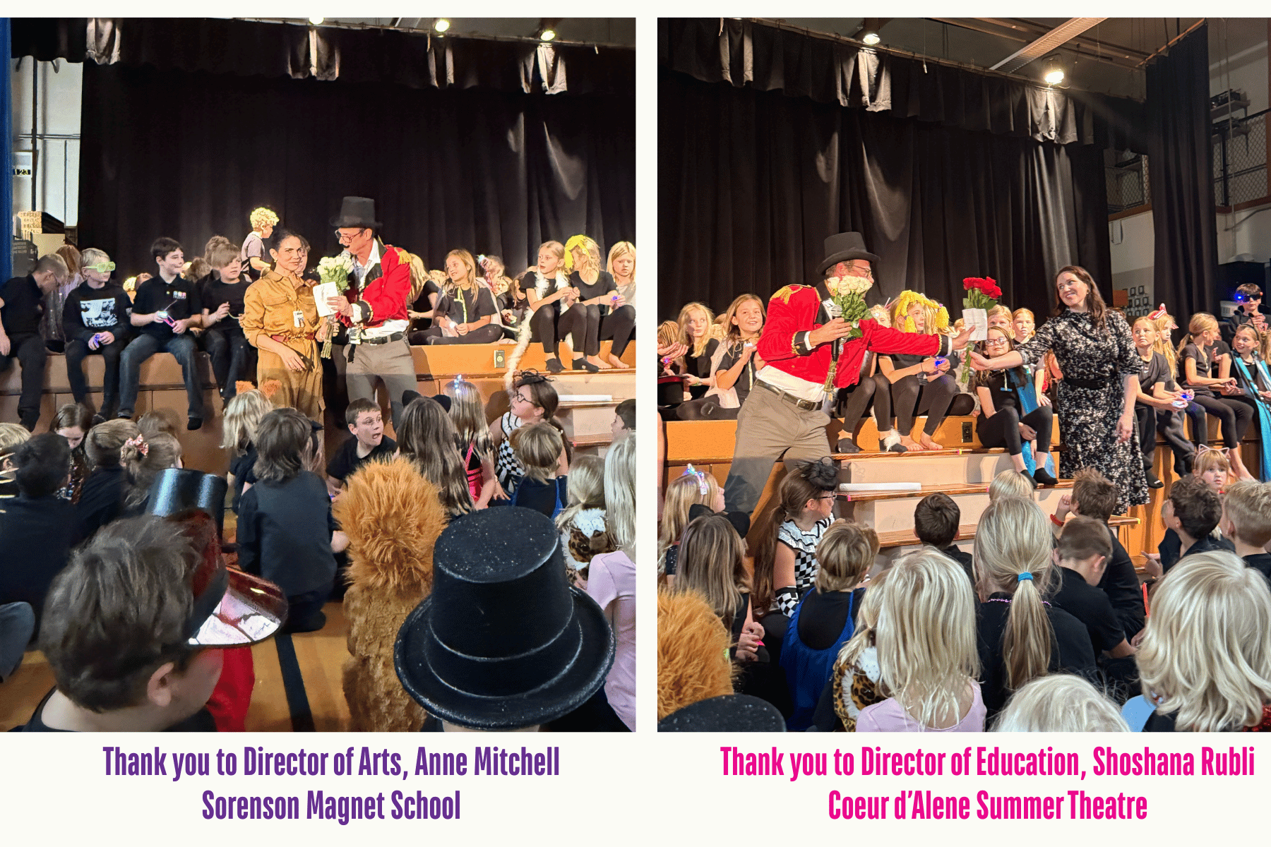 Sorensen’s Art in Residence program thrives only thanks to the tireless efforts of families, staff, and supporters. Through the school’s annual auction, the community rallies to fund these transformative experiences. Each residency not only brings joy to students but also shows them what it means to pursue a creative career or simply a life filled with artistic passion. We are so grateful, here at Coeur d'Alene Summer Theatre to have been able to partner with Sorenson to make every student feel like they were on center stage.